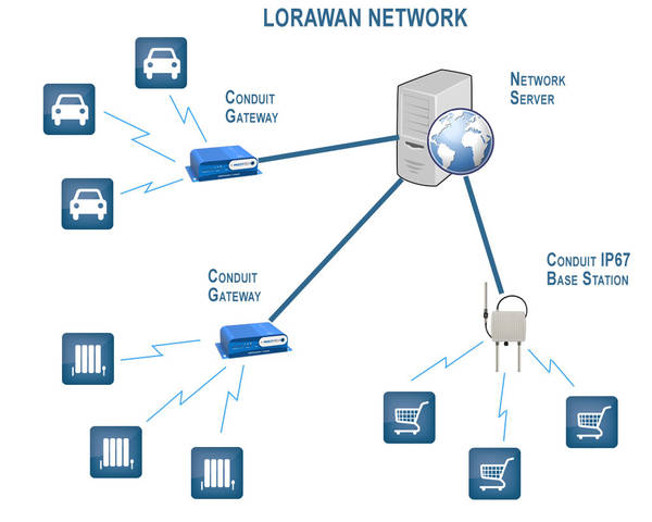 A typical wireless LoRaWAN network is a collection of gateways forwarding messages between terminal and central server (Network Server, NS), and is characterized by “star” topology “star-of-stars”.