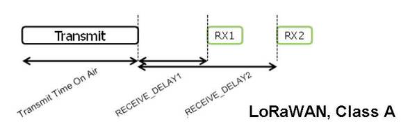 Class A devices after each transmission open two short time windows for reception (denoted as RX1 and RX2).