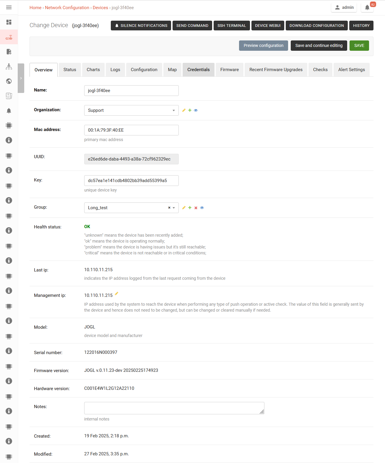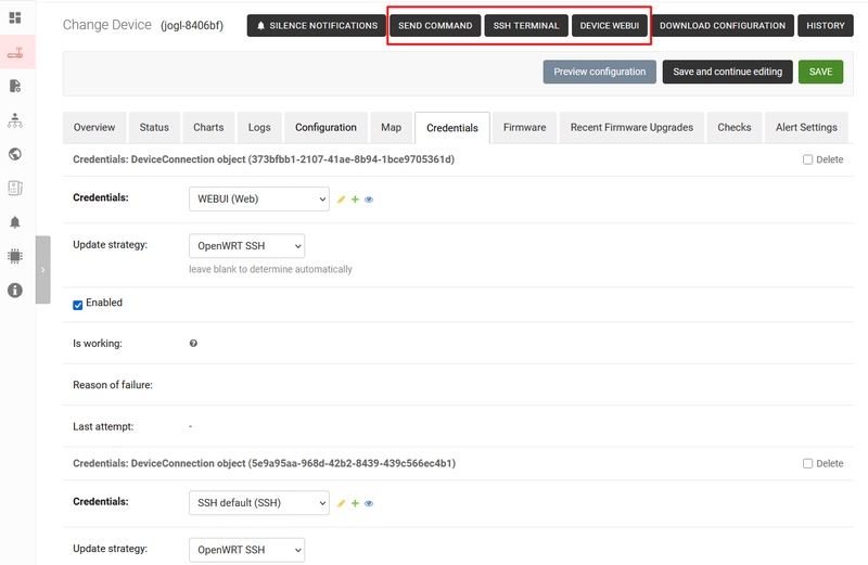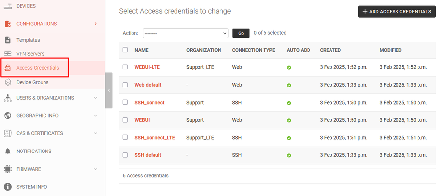 - After adding the credentials the user can connect to device via SSH, web UI admin or send command reboot/change password (without authorization)