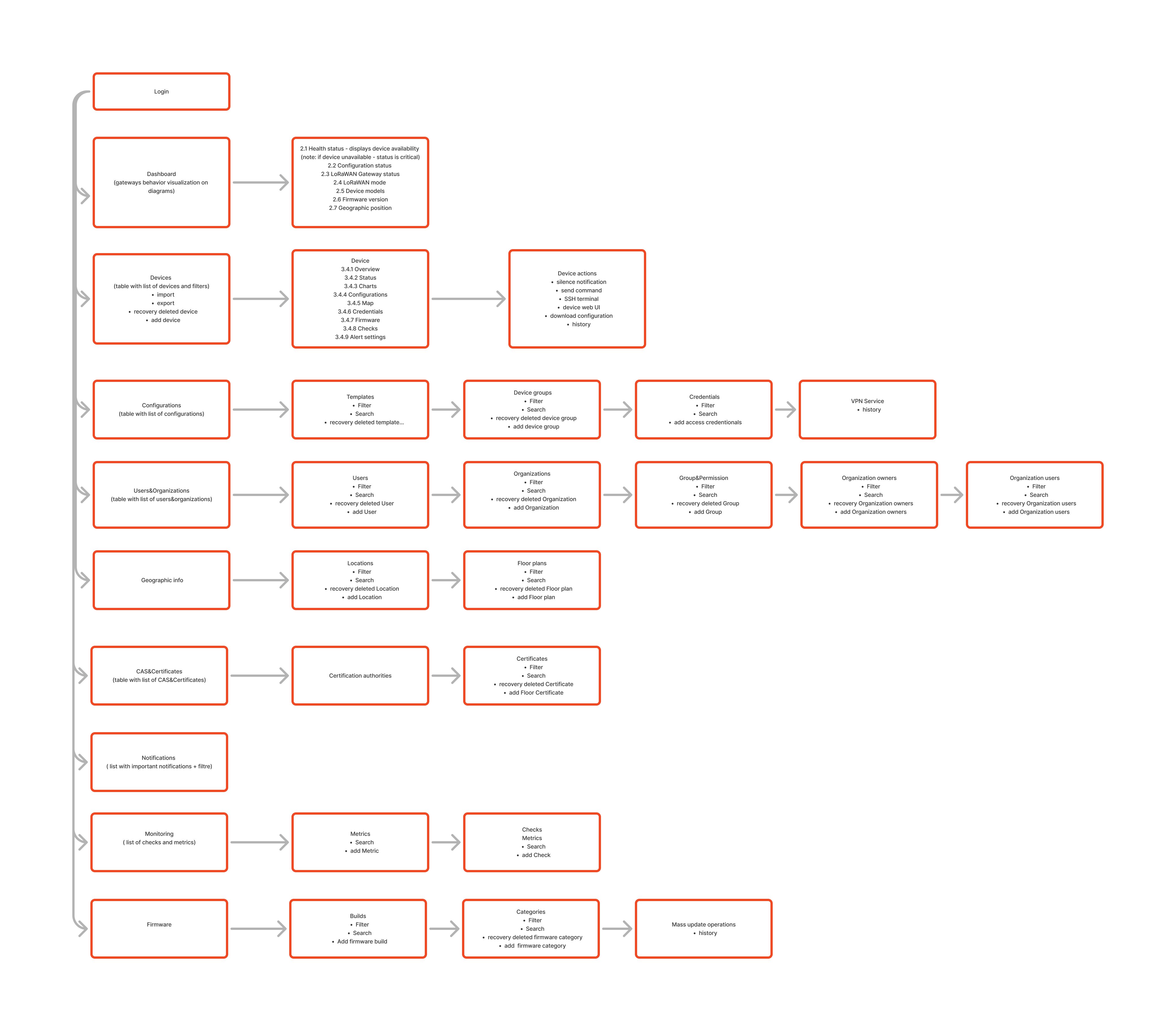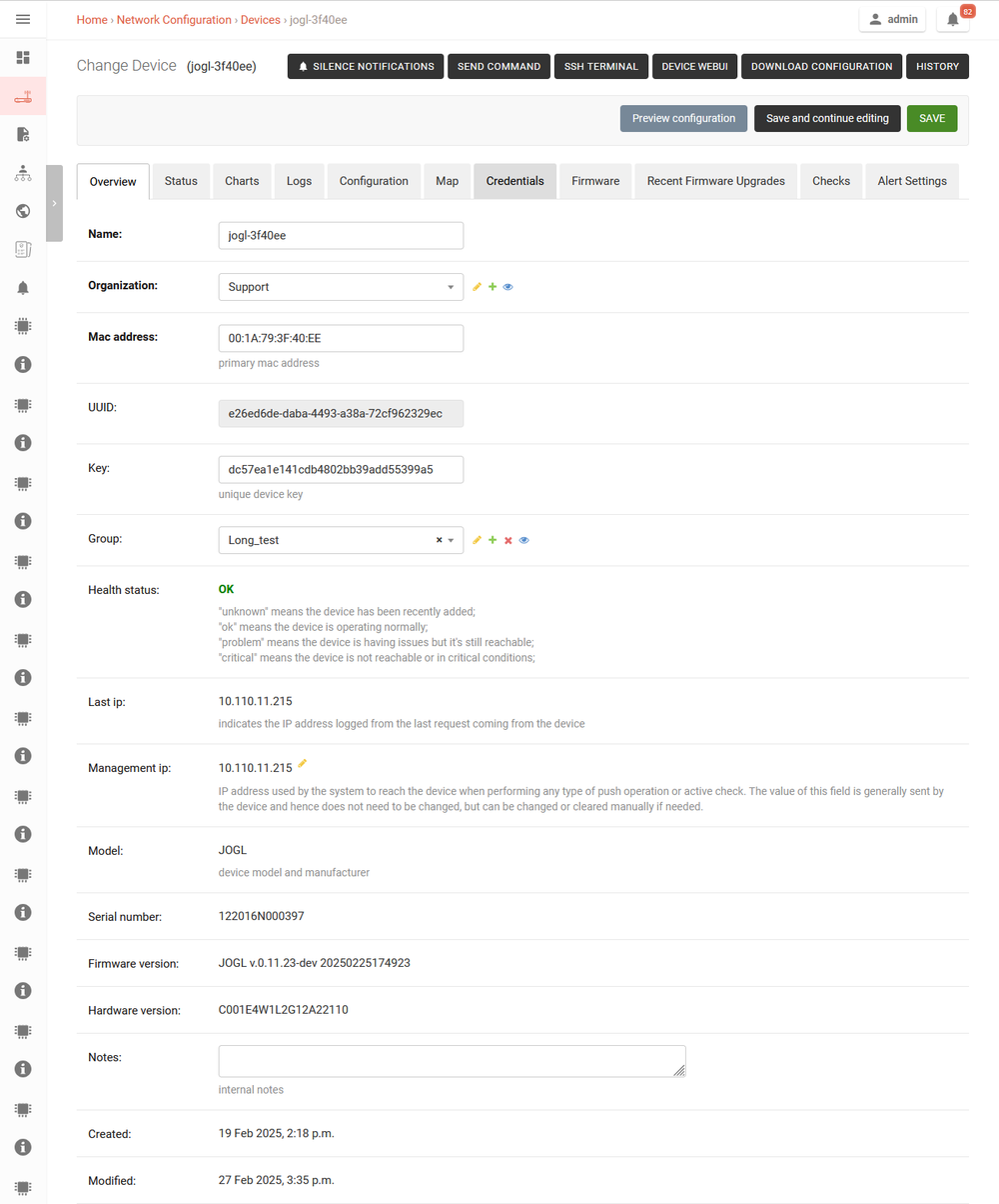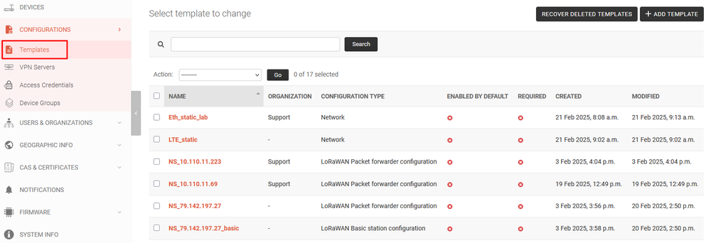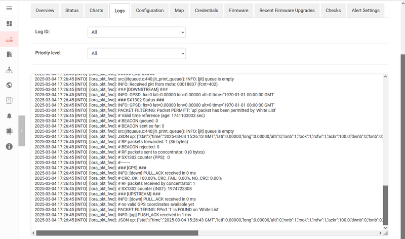 - Ability to view logs from devices (SSH, Firewall, Device manager, Kernel, Packet forwarder, Basic station, Modem manager, Network manager, NTPD, PPPD, SystemD)