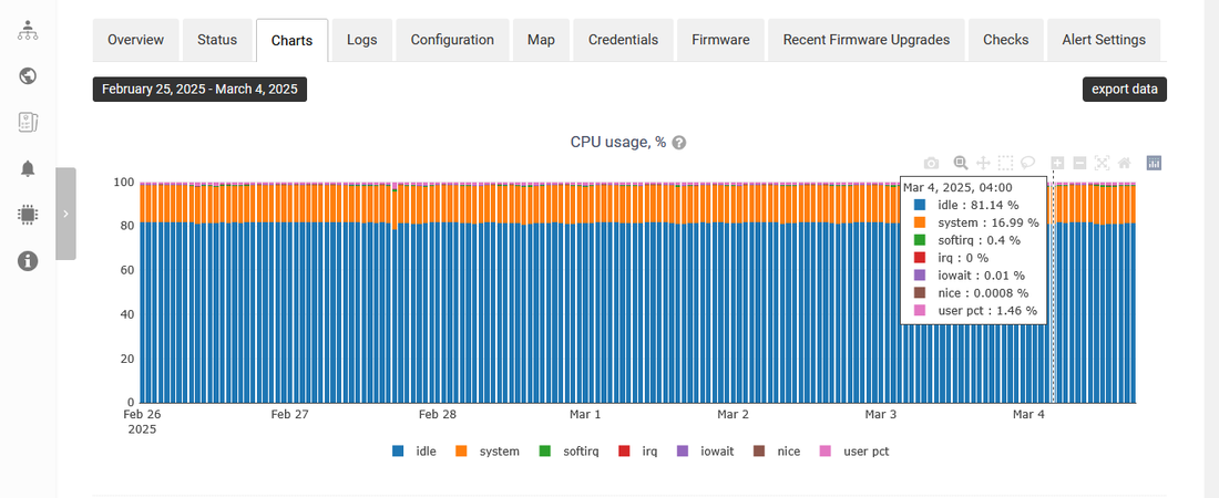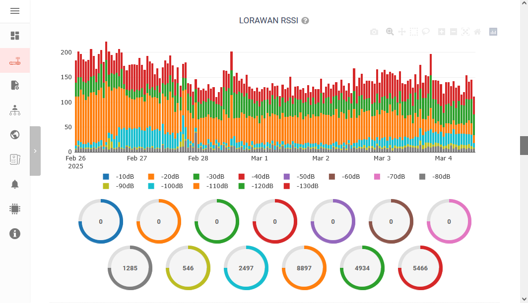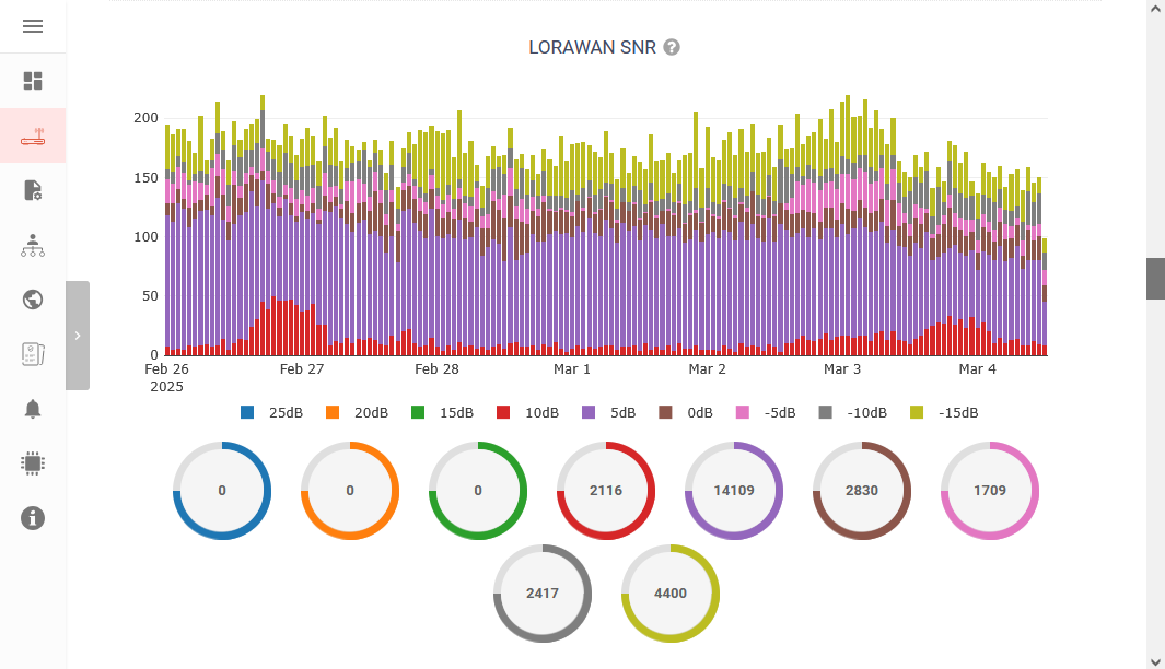 - with device statistics and monitoring (CPU usage, LoRowan uplink packages, LoRowan uplink\downlink air times, SNR, RSSI, Ping success rate, packet losts, round trip time, traffic wlan, memory usage, disk usage)