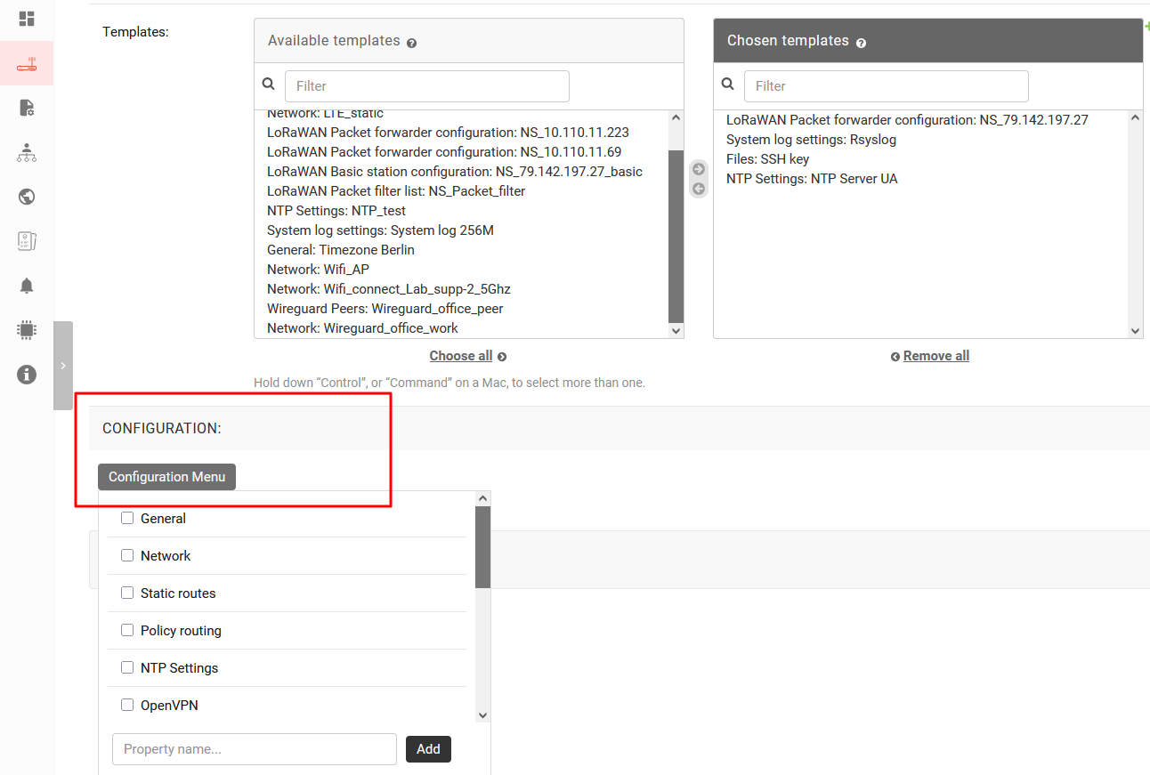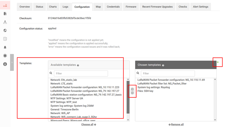 - After the user chooses a new template the program checks it and apply to the device or device group. Also user could choose already existing configurations from a list