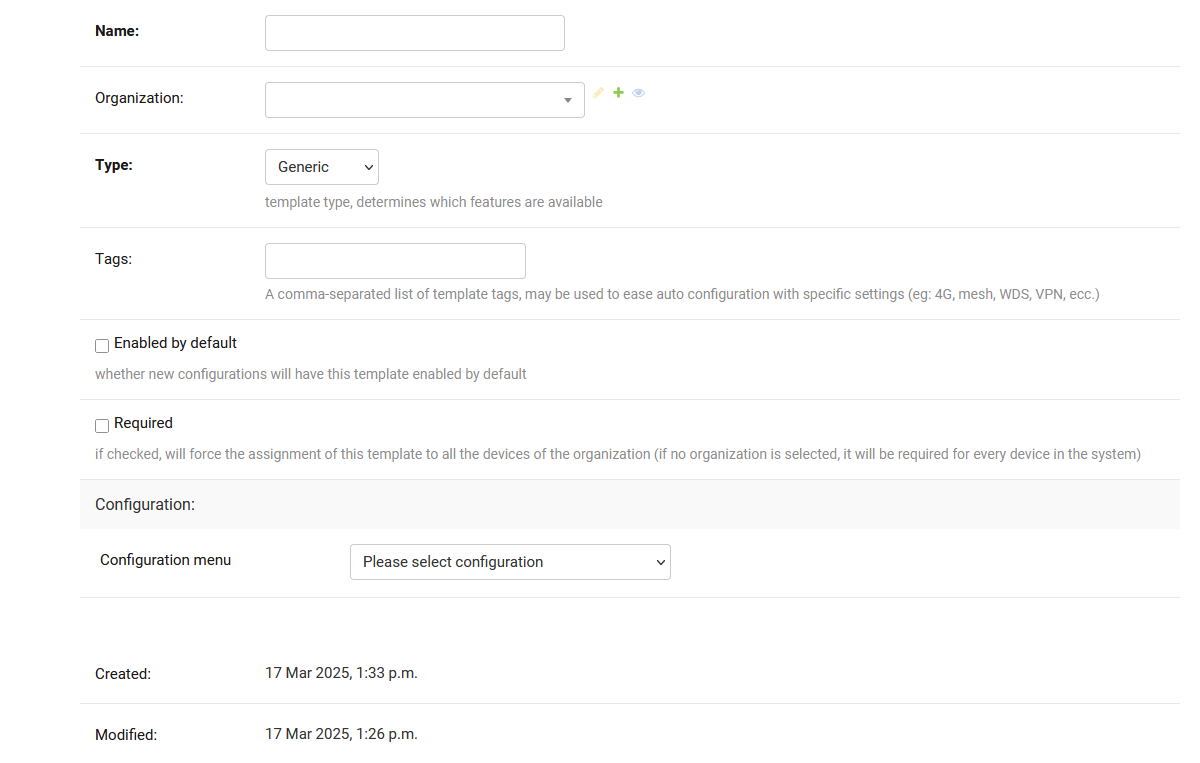 add the template as a separate menu, user can create his configuration template for future use in a group of devices or a separate device