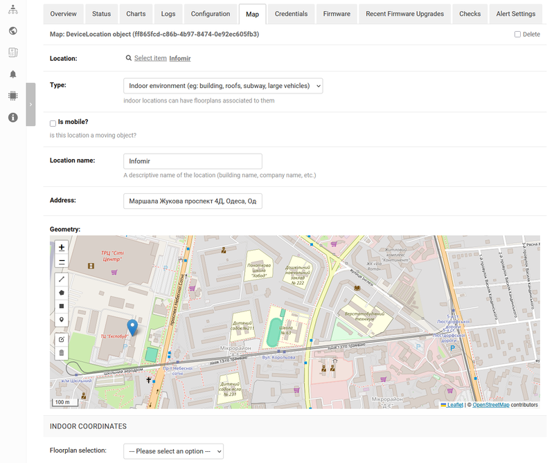 - Geographic position - displays devices with assigned geolocation and marking them on a map