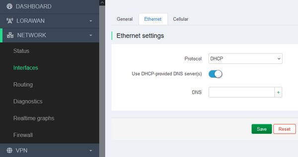 Network ⇒ Interfaces ⇒ Ethernet