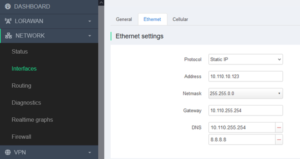 Network ⇒ Interfaces ⇒ General
