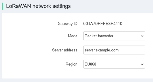 Mode - Operating mode (Packet Forwarder or Basic Station).