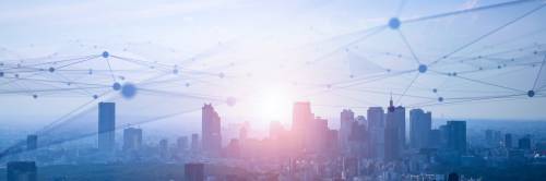 - Smart city and communication network concept. 5G. IoT (Internet of Things). Telecommunication.